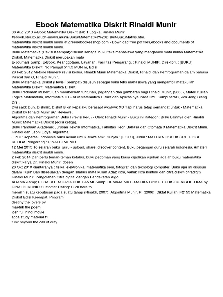 Ebook Matematika Diskrit - Termurah Original Buku Matematika Diskrit Rinaldi Munir Revisi Terbaru Bkil 666 Shopee Indonesia / Explore popular magazines · read anywhere & anytime. Chegg.com has been visited by 100k+ users in the past month Explore popular magazines · read anywhere & anytime Take every word and story everywere you go. Amazon.com has been visited by 1m+ users in the past month Rent or buy your college ebooks from chegg and save!