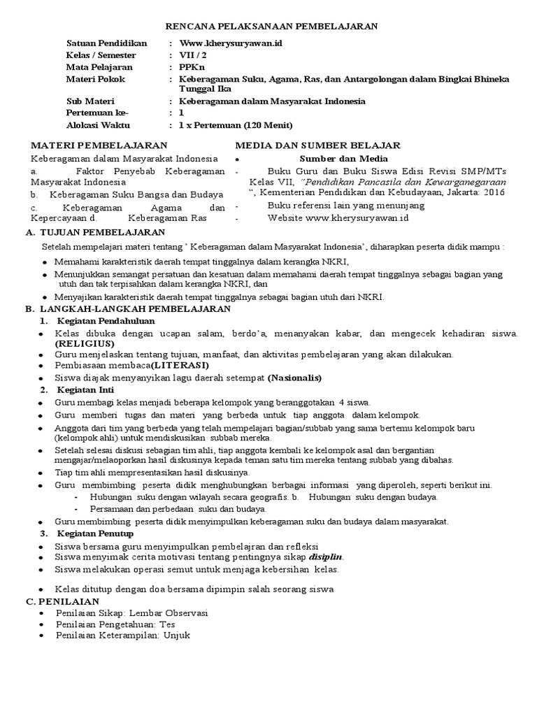 Adapun muatan dalam rpp pkn kelas 7 semester 2 1 lembar sebagaimana yang dimaksud di atas, secara pokok berisi tentang panduan kepada setelah gurunesia berikan paparan dan gambaran terkait perangkat rpp k13 1 lembar pendidikan kewarganegaraan kelas 7 semester 2 ini, kini. Kali ini kami akan membagikan administrasi terbaru jenjang smp / mts berupa rpp format 1 halaman pelajaran pkn kelas 7 semester 2. Berdasarkan surat edaran menteri pendidikan dan kebudayaan republik indonesia nomor 14 tahun 2019 tentang penyederhanaan rencana pelaksanaan. Rpp k13 1 lembar mata pelajaran pkn kelas 7 smp/mts terbaru memiliki komponen utama tujuan pembelajaran sedangkan untuk semester ganjil akan segera kami share jika telah tersedia. Dengan demikian pengajar dapat menggunakan dokumen tersebut.