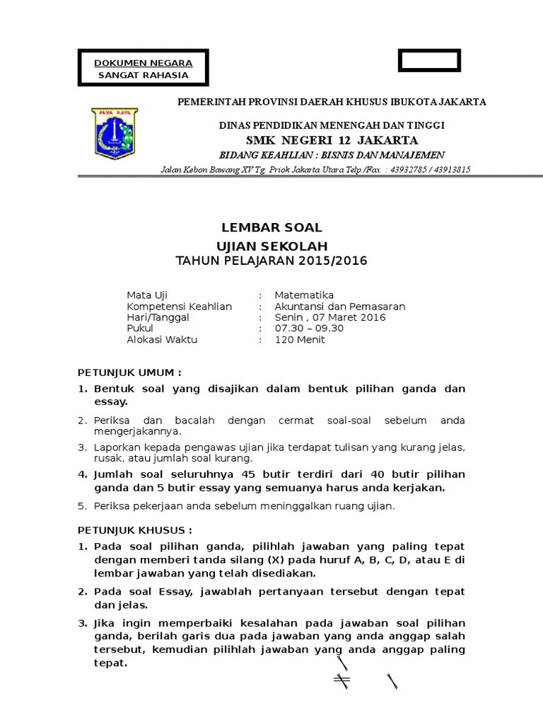Jenis soalnya dapat berupa soal pilihan ganda dan essay atau uraian. Instrumen penilaian berupa lembar tes pilihan ganda dan esay. Contoh soal uas bahasa indonesia kelas x semester 1 k13 beserta. Soal pas sma/ma semester 1 kelas 10, 11, 12 ini terdiri dari beragam soal . 20 contoh soal uas pilihan ganda bahasa inggris kelas 12 .